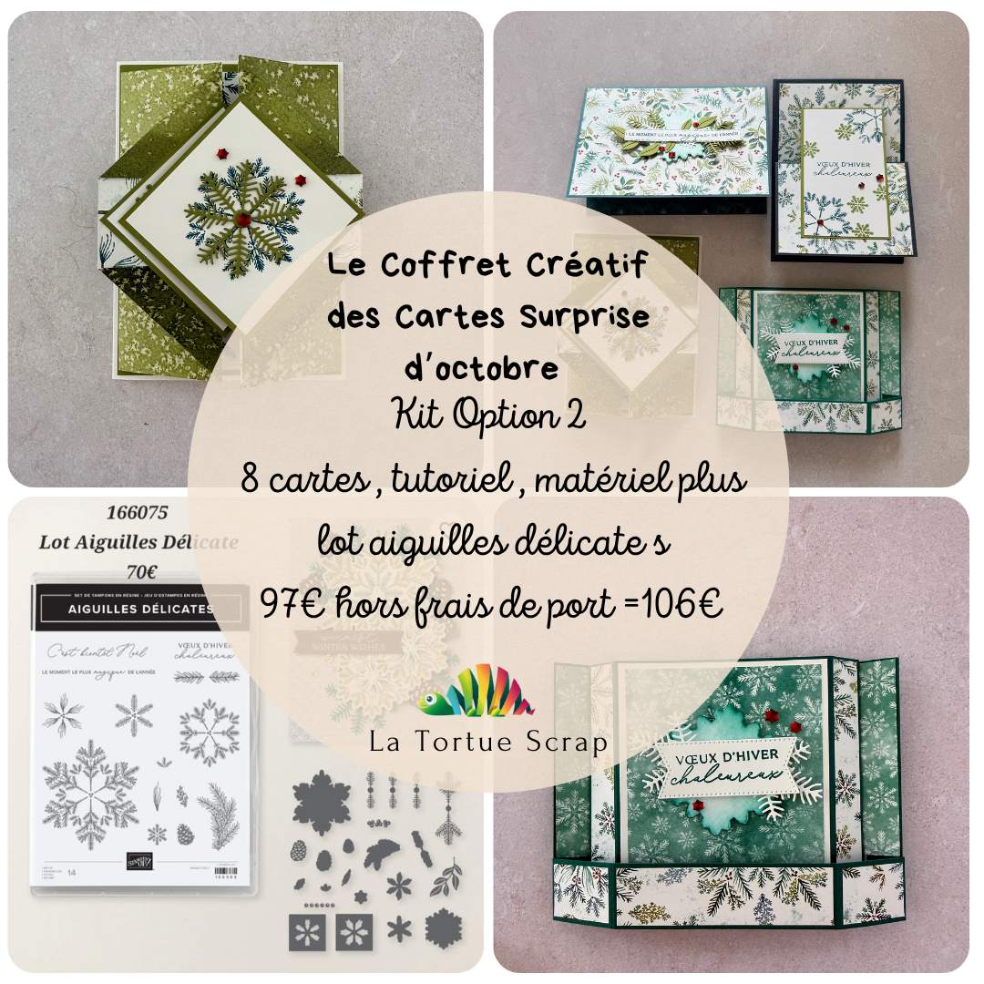 Tu pourras également ajouter à ta commande le lot aiguilles délicates à 70€ assortis aux créations pour te perfectionner dans la réalisation de tes cartes. Cette option n’est pas obligatoire , mais elle vous permettra d’enrichir encore plus votre expérience créative.